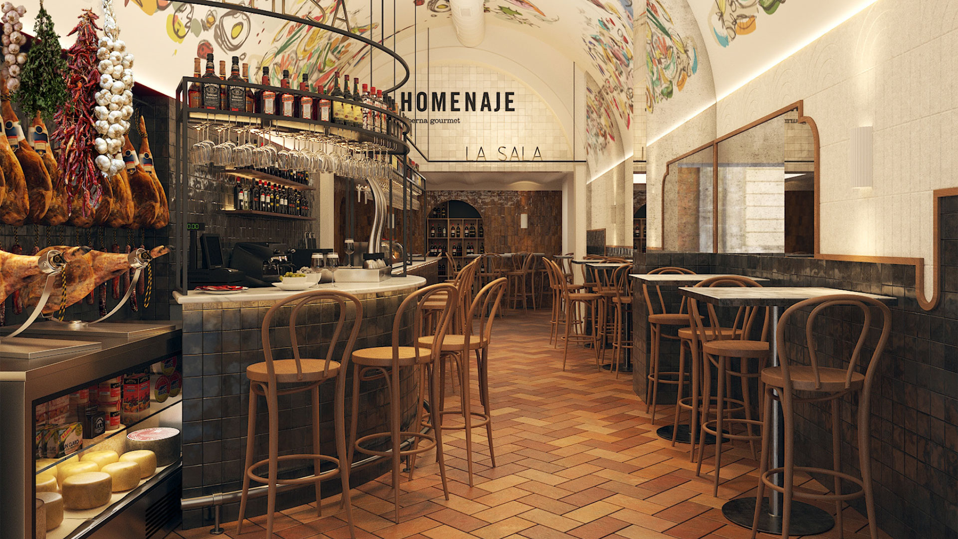 Desde 2014 y en pleno barrio de Cánovas, Homenaje Taberna Gourmet da la bienvenida a sus clientes con una experiencia gastronómica basada en la reinterpretación de las mejores tapas españolas en un formato de taberna urbana: Elige comer en mesa, mesa alta o barra y disfruta, además, de la charcutería selecta e ibéricos al corte, quesos para los paladares más exquisitos, salazones, ahumados y conservas de alta calidad. Todo ello, con los sellos de calidad de las D.O más importantes del territorio nacional.