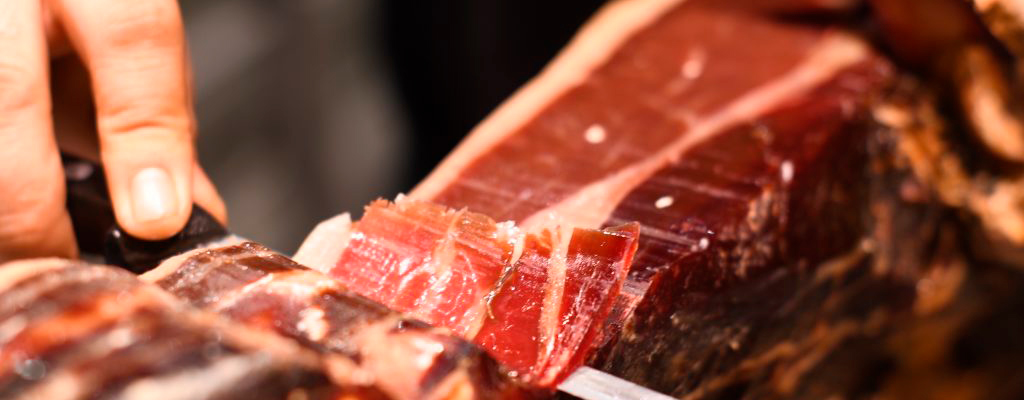 Encuentra las 4 Denominaciones de Origen en nuestro local del barrio de Cánovas: Dehesa de Extremadura, Jabugo, Guijuelo, Los Pedroches. Cortados al momento para degustar en local o envasados al vacío en el momento para llevar.